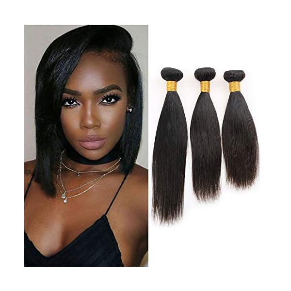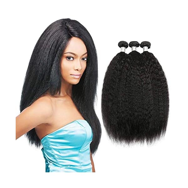 NamiBeauty Kinky Straight Human Hair 3 Bundles Brazilian Virgin Hair Yaki Straight 100% Unprocessed Remy Human Hair Extensions Natural Color