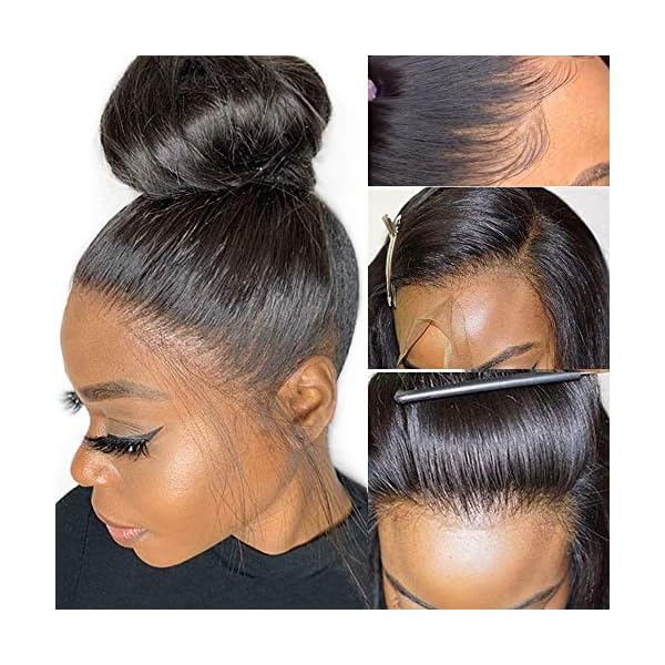 Mureen 13×6 Deep Wave Lace Front Human Hair Wigs Brazilian Unprocessed Virgin Human Hair Deep Part Lace Frontal Wig 150% Density Pre Plucked with Baby Hair Natural Color (16 Inch)