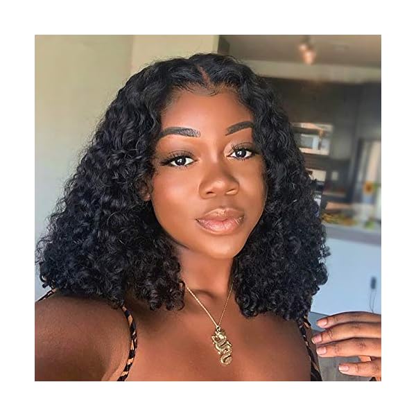 SEMMELY Short Afro Kinky Curly 4 X4 Lace Closure Wigs Brazilian Human Hair Curly Bob Wigs 150% Density Lace Front Wigs Natural Color