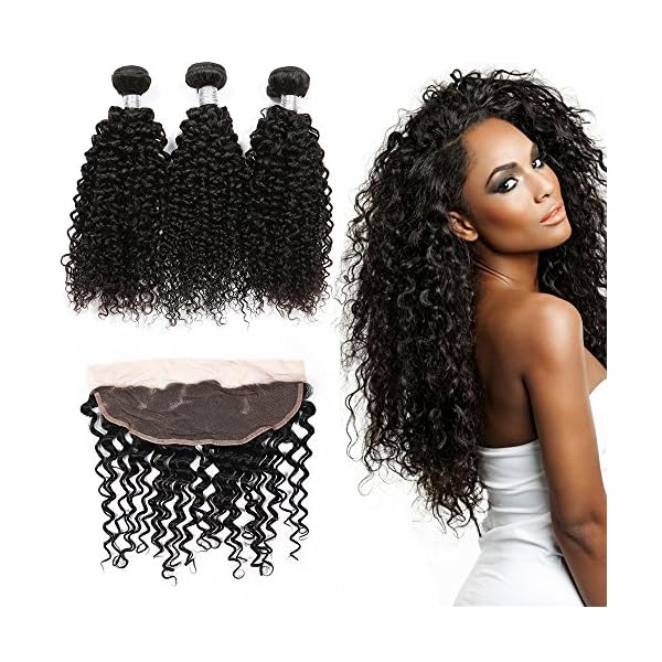 8A Lace Frontal Closure With Bundles Mongolian Kinky Curly Virgin Hair With Closure 3 Bundles With 13×4 Ear To Ear Lace Frontal Closure 100% Human Hair(141414+ Lace Frontal 12)