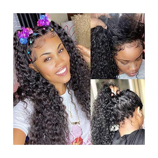 Deep Wave Bundles Lace Frontal Human Hair 9A Brazilian Virgin Hair Deep Curly Wave Bundles Human Hair Glueless for Black Women Deep Wave Lace Front Bundles Pre Plucked with Baby Hair 150% Density