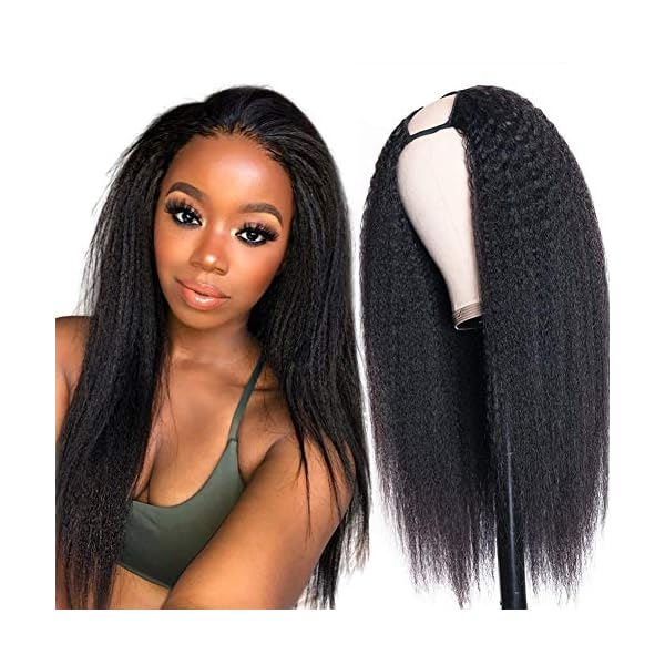MSGEM 10A U Part Kinky Straight Wig Human Hair,Kinky Straight 28 inch U Part Human Hair Wig for Black Women, Brazilian Remy Human Hair Glueless Full Head Clip in Half Wig 150% Density Natural Color