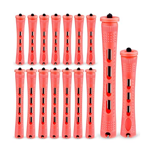 48 Pieces Hair Perm Rods 2 Sizes Plastic Cold Wave Perming Rods Hair Rollers Curlers for Hairdressing Styling(0.51 x 2.36 Inch, 0.51 x 3.27 Inch,Light Orange)