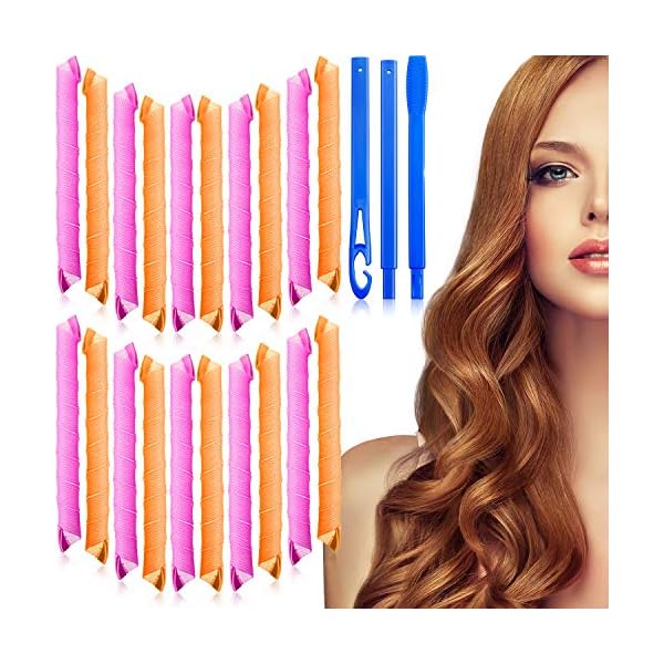 20 Pieces Hair Curlers Rollers Spiral Curls Styling Kit No Heat Hair Curlers with 2 Styling Hooks for Hair Rolling Curling, Stretchy up to 22 inch/ 55 cm