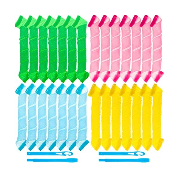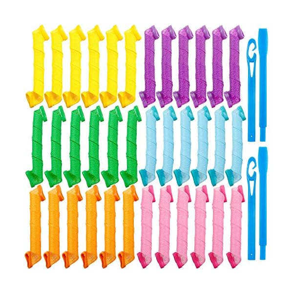 36 Pieces No Heat Hair Curlers Spiral Curl Styling Kit Spiral Curlers Hair Roller Curler for Extra Long Hair Most Kinds of Hairstyles (Pink, Blue, Yellow, Green, Orange, Purple, 30 cm/ 12 Inch)