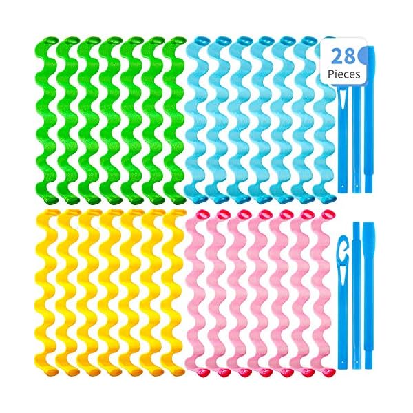 28 Pieces Heatless Curlers No Heat Spiral Curls Hair Curlers Styling Kit with 2 Pieces Styling Hooks for Most Kinds of Hairstyles (30 cm, Assorted Color)