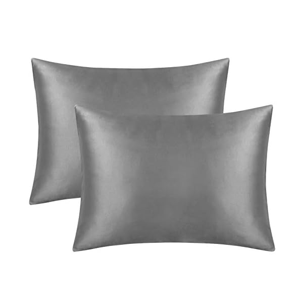 EXQ Home Silky Satin Pillowcase for Hair and Skin,Soft Grey Pillow Cases Queen Size Set of 2 Satin Pillow Case with Envelope Closure Silver Grey(20×30 inches)