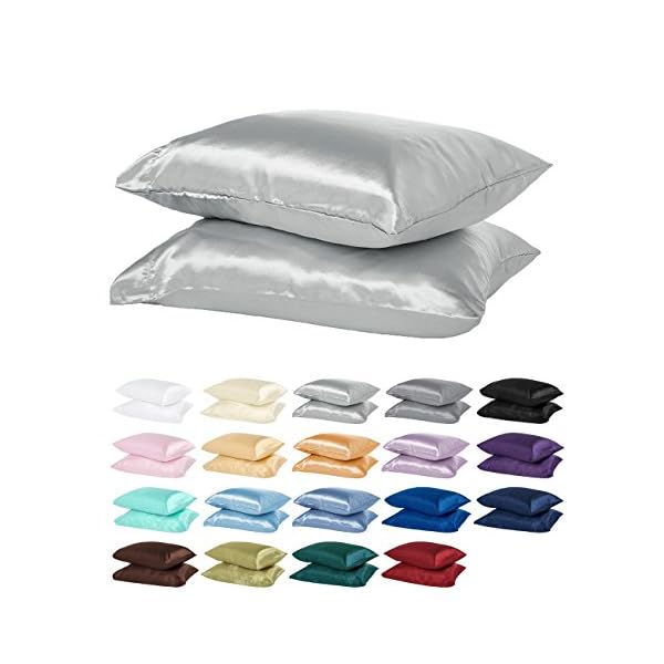 DreamHome Satin Standard/Queen Pillowcase, Silver, Pair