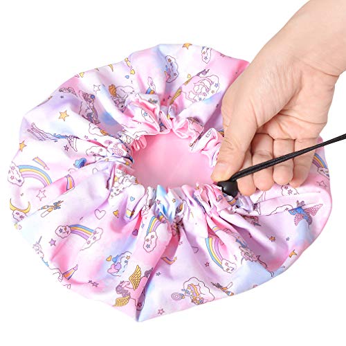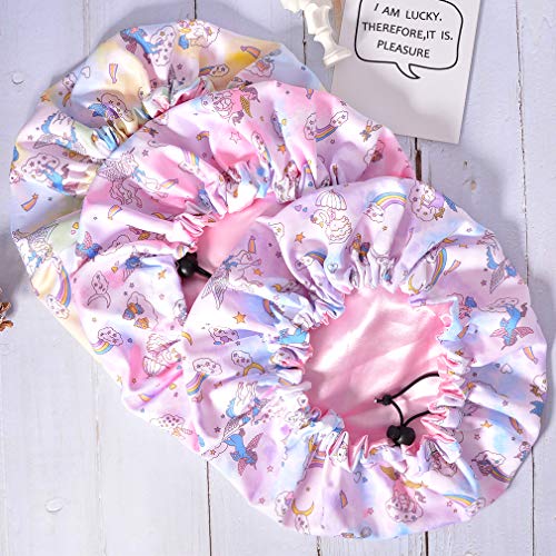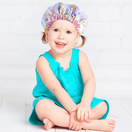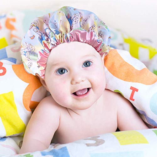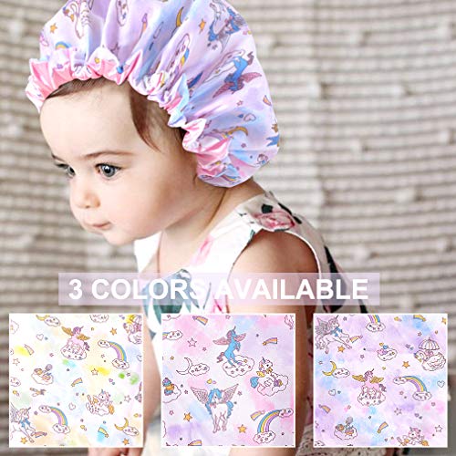 ☆CUTE UNICORN PRINTS: 3 color of the thrill unicorn on the Satin Bonnets very cute.Green, Pink, Purple. Handle moisture, No Color Shading or Fading.