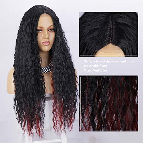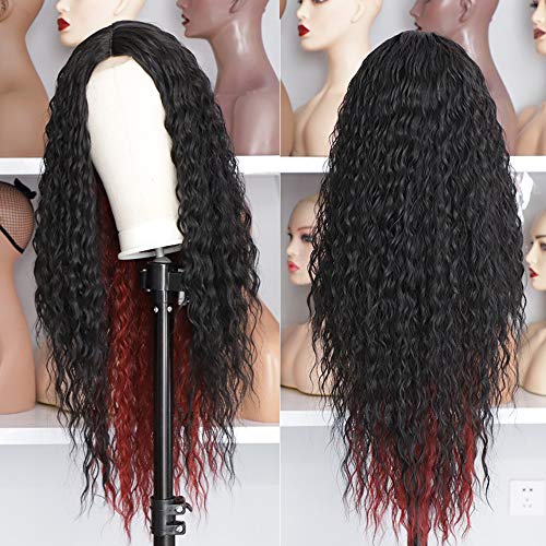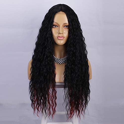 【Fashion WIG TYPE】 Middle part wig, black mixed red color, long curly style,natural looking. (Kind Reminder: Slightly Color Difference between Different Monitors) Length: 26 inches. It’s your best choice for daily wear, working, dating, concerts, cosplay, costume, theme parties, video shoots or just for a change of look.