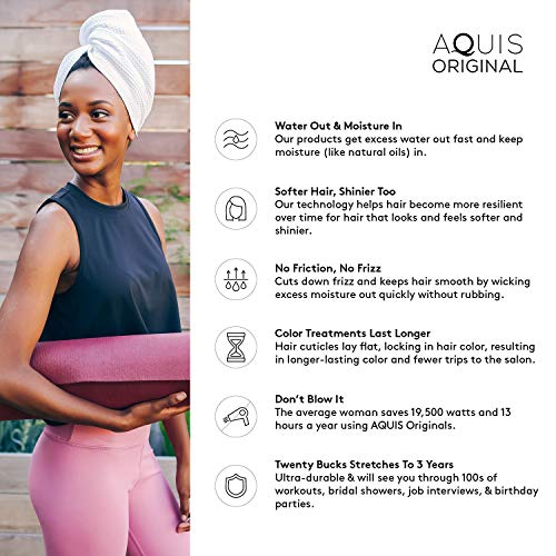 NOT YOUR ORDINARY MICROFIBER TOWEL: (19 x 39 Inches) AQUIS Original Hair Towels are made from Aquitex microfiber. Engineered to correctly dry hair from wet to damp 50% faster than cotton towels or the harmful heat of blow dryers, while drying evenly, gently and regaining hairs strength.