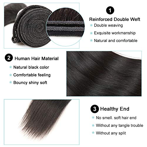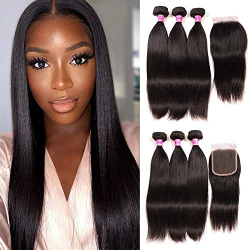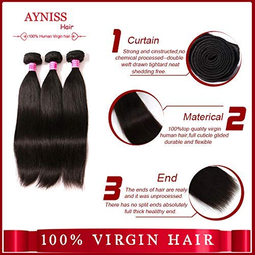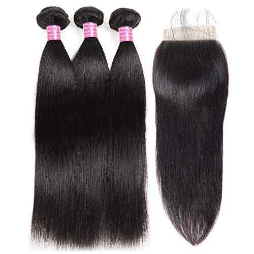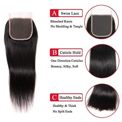 1.Hair Material:Straight Brazilian Hair Bundles with Lace Closure 10A 100% Unprocessed Brazilian Virgin Human Hair, Collected From Young Donor, Long Lasting.
