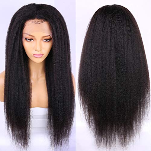 100% Human Hair:Unprocessed Kinky Straight Lace Front Human Hair Wig Pre Plucked with Baby Hair Around ,Bleached Knots and Natural Hairline,very natural.