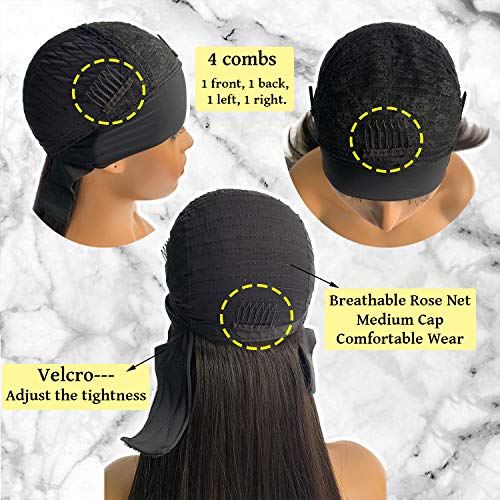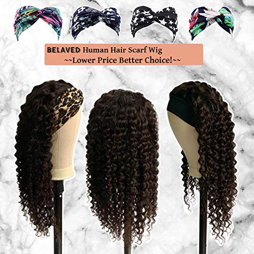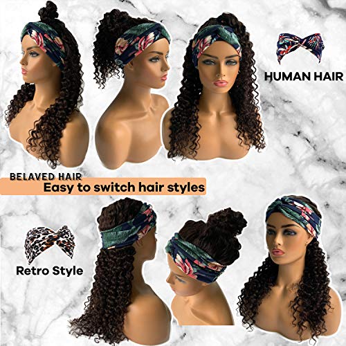 ★No Lace Front Scarf Wigs allows to show your own hairline,looks more natural.Breathable elastic ice silk band around forehead circle,mroe comfortable wearing.No Glue needed, 4 combs inside and adjustable velcro band in the back,more stable wear.