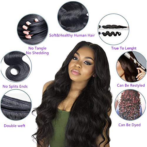 Hair Material: 100% Unprocessed Human Hair 8A Body Wave Human Hair Bundles with Closure. You’ll be able to perm & dye & straighten & bleach as you like.
