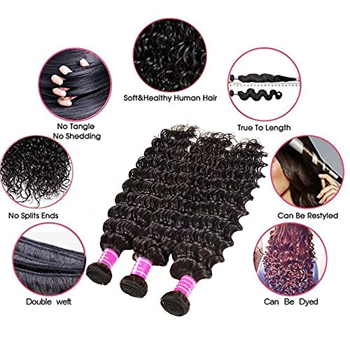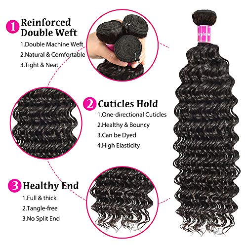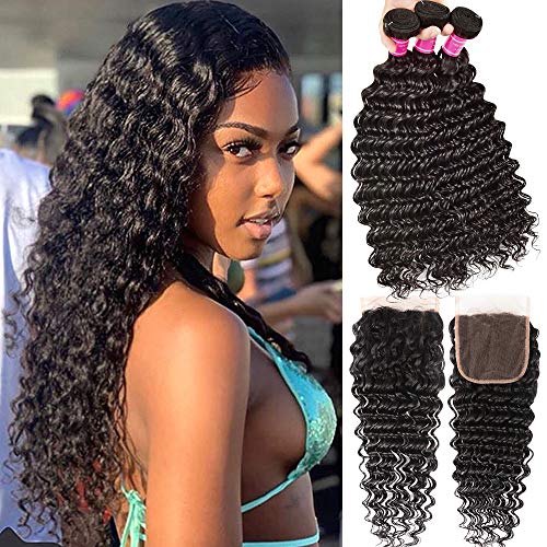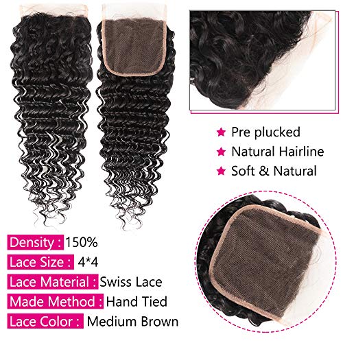 1.Hair Material:Deep Weave Bundle with 4×4 Lace Clsoure Free Part is 100% Virgin Unprocessed Human Hair, Natural Hair Cut from Young Donor, Full Cuticle Aligned