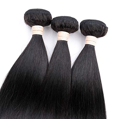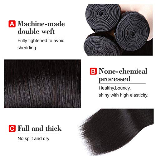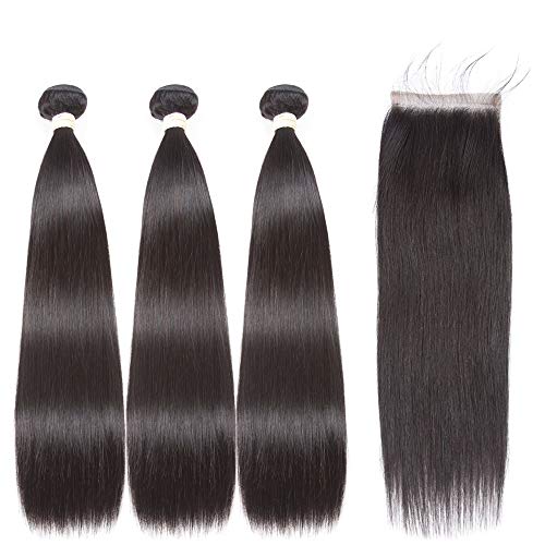 ?Hair Quality: Full Head Straight Hair 3 Bundles with Lace Closure, Double Machine Weft, No Shedding, No Tangles, No Smell; Full Cuticle with Healthy Ends