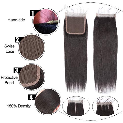 ?Color & Weight: Straight Hair 3 Bundles with Closure, Natural Black Color, 95g-100g/Bundle; Lace Closure is 22-28g, Lace Size: 4×4 Lace Closure, 150% Density; .It Can Be Dyed and Restyled as Your Own Hair.