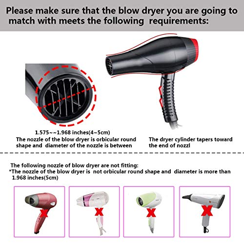 Hair Dryers Size:: Skilled hair dryer diffuser size is sutiable for nozzle diameter:D-1.575Inch-1.968 Inch (four-5cm), and there’re no additional ring wrapped across the nozzle.