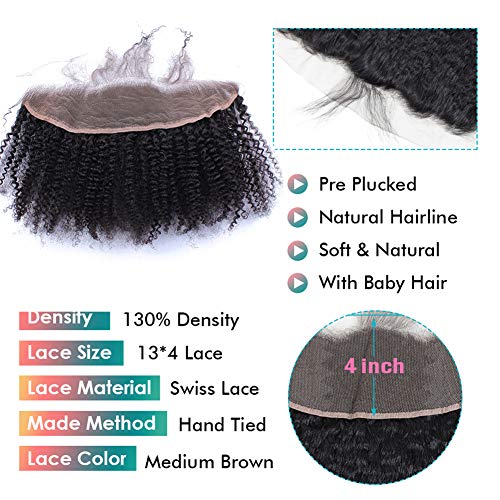1)100% Unprocessed Virgin human Hair,Afro Kinky Curly Lace Frontal Closure,No Bad Smell,(Invisible Knots looks like your Real Scalp and Blends Well);