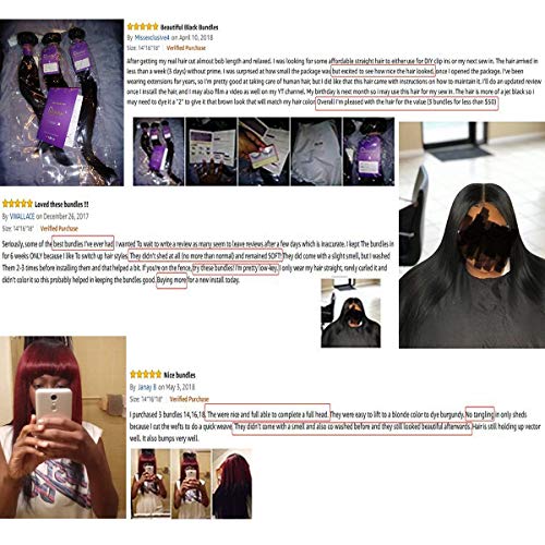 ✔ Exquisite Weft: We only use top quality 100% human hair as material. Straight hair bundles are double strong weft to make bundles more tighter and neater. Our virgin Brazilian human hair is no shedding,no smell and free tangle. You’ll sew and wash our straight bundles with confidence.