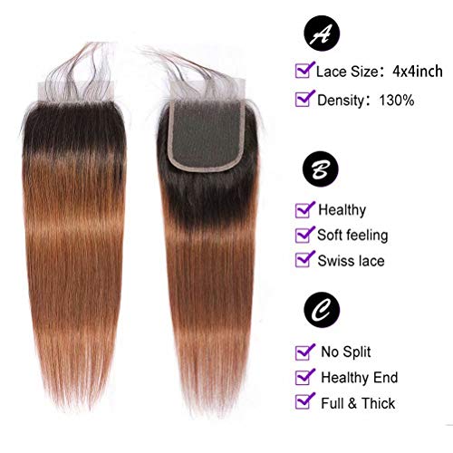 ★Hair & Lace Color: Ombre 1b/30 human hair bundles and closure, Medium brown color lace bleached knots fairly, More Hair Colors we have 1b/burgundy, 1b/27, 1b/99j,and so forth for your choice