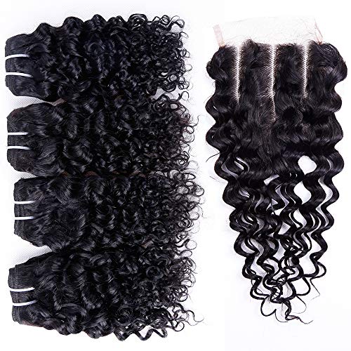 Water Wave Human Hair Bundles with Closure