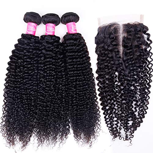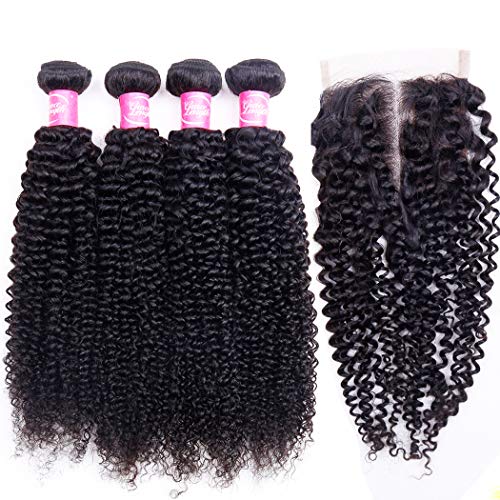 Unprocessed Brazilian Virgin Hair Kinky Curly Hair Bundles with 4X4 Middle Part Lace Closure