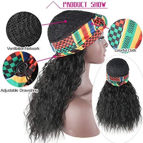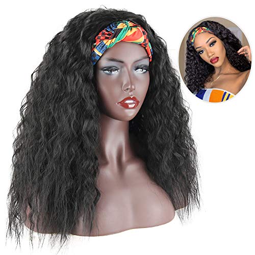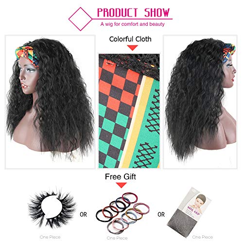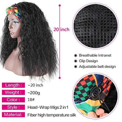 【ABOUT Headband Wigs】:Kinky Curly Head-Wrap Wig,2 in 1 Wrap-Wig,Length: About20 Inches; Weight: 200g;Colors:1B#; Colorful Turban,Scarf material is comfortable, good air permeability.