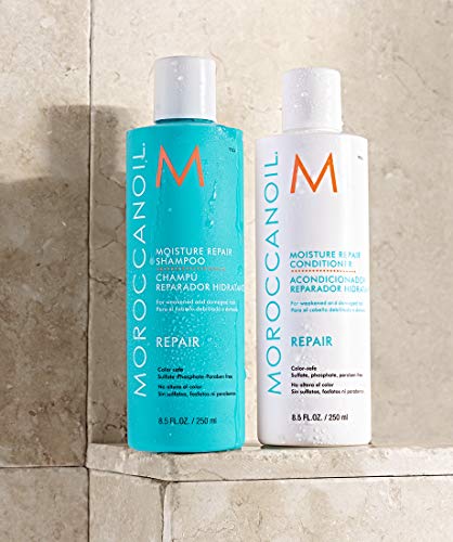 Moroccanoil Moisture Repair Shampoo gently cleanses and is helping restore hair weakened and damaged by chemical processing, color or warmth styling. Nourishing formula is infused with antioxidant-wealthy argan oil, reconstructive keratin and fatty acids for stronger, shinier and more manageable results. Fragranced with the signature Moroccanoil scent, an exotic blend of spicy amber aromas and sweet floral notes.