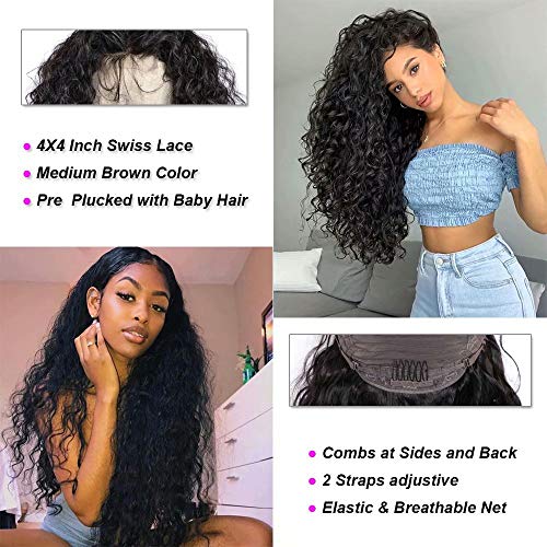 - Hair Texture: 4×4 Water Wave Lace Front Wigs, Pre Plucked Natural Hairline, Baby Hair Around The Perimeter to Give U Natural Looking, The Wig Can be Part Any Way and Restyle Like Ur Own Hair.