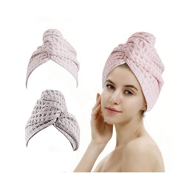 M-bestl 3 Pack Microfiber Hair Towel,Hair Towel Wrap,Hair Drying Towel, 350 GSM Super Absorbent and Lightweight Hair Turban to Dry Hair Faster (Pink&Gray&Gray)